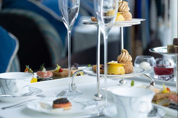 The entrance includes 2 drinks per person and 2 snacks. You can choose from the following options: arancini al ragù, Gougére truffles, foie gras with honey and walnuts, pasta with caviar, vitello tonnato, caprese salad with burrata, and pissaladière with onions and anchovies.