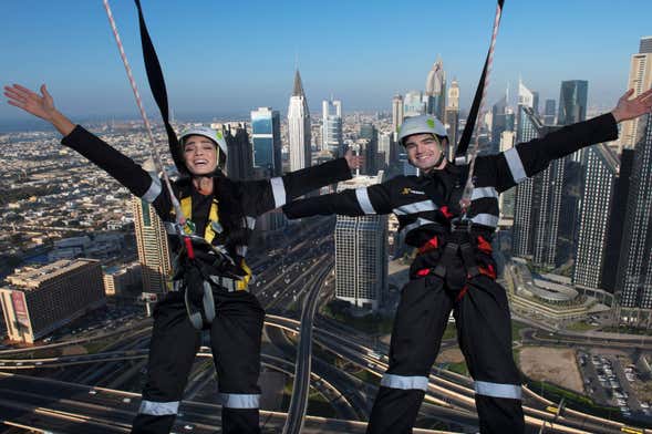 L'expérience Edge Walk va vous époustoufler. Nous vous aiderons à enfiler votre harnais et vous pourrez vous rendre sur le rebord extérieur du bâtiment Sky Views Dubai. Pendant environ 20 minutes, vous pourrez marcher le long de cette passerelle aérienne et profiter des vues incroyables sur le Burj Khalifa et les gratte-ciels environnants. Il s'agit d'une véritable expérience de défi à la gravité !